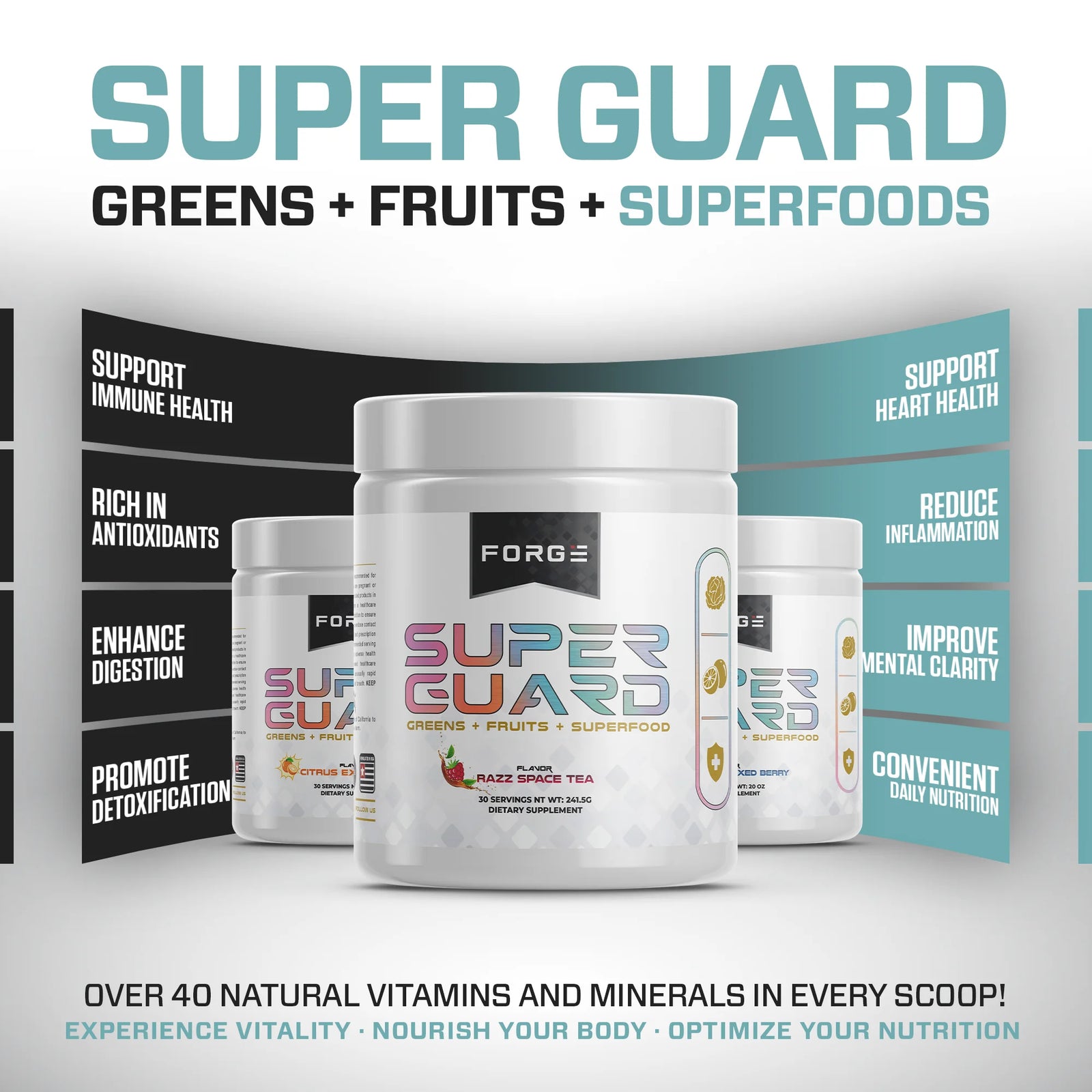 Super Guard is a comprehensive superfood and greens supplement designed to boost energy, support immune health, and enhance overall wellness. It contains over 40 natural vitamins and minerals from fruits, vegetables, and superfoods.